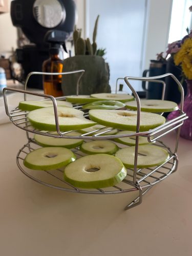 正如你所看到的,使用的可逆架Foodi不离开你的房间很多苹果。这架适合一个很大型的奶奶史密斯苹果。