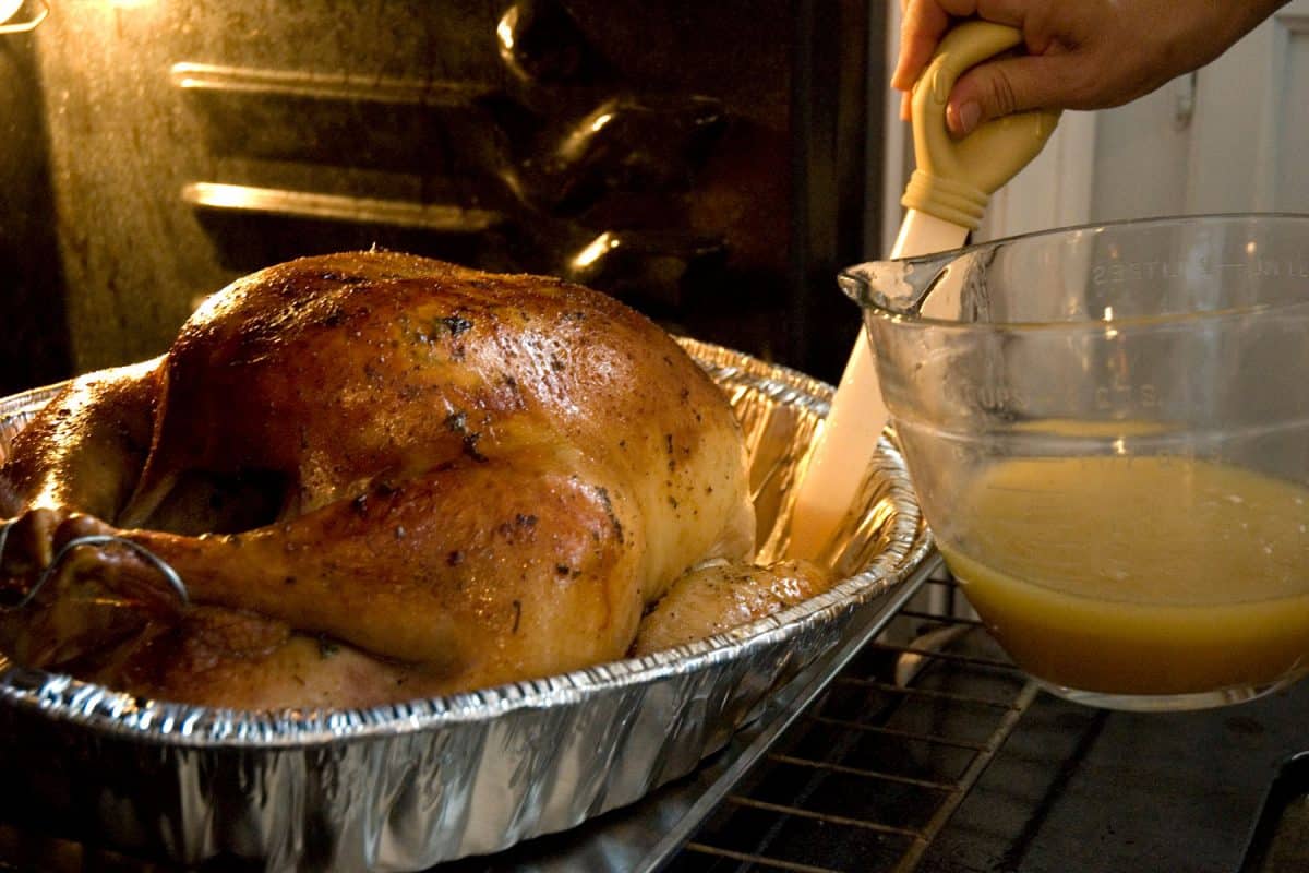 如果你打算给火鸡涂油,那么你不一定需要担心有一个涂油器。许多不同的厨房用具都可以做到这雷电竞官网网址一点。他们只需要能够以某种方式将液体从锅中输送到火鸡的顶部。只是要确保当你为涂了油的火鸡计划烹饪时间时,你要留出一点空间。这样,即使从打开烤箱到涂油的烹饪过程减慢了,也不会耽误你的时间。接下来要做的就是享用美味的火鸡了!